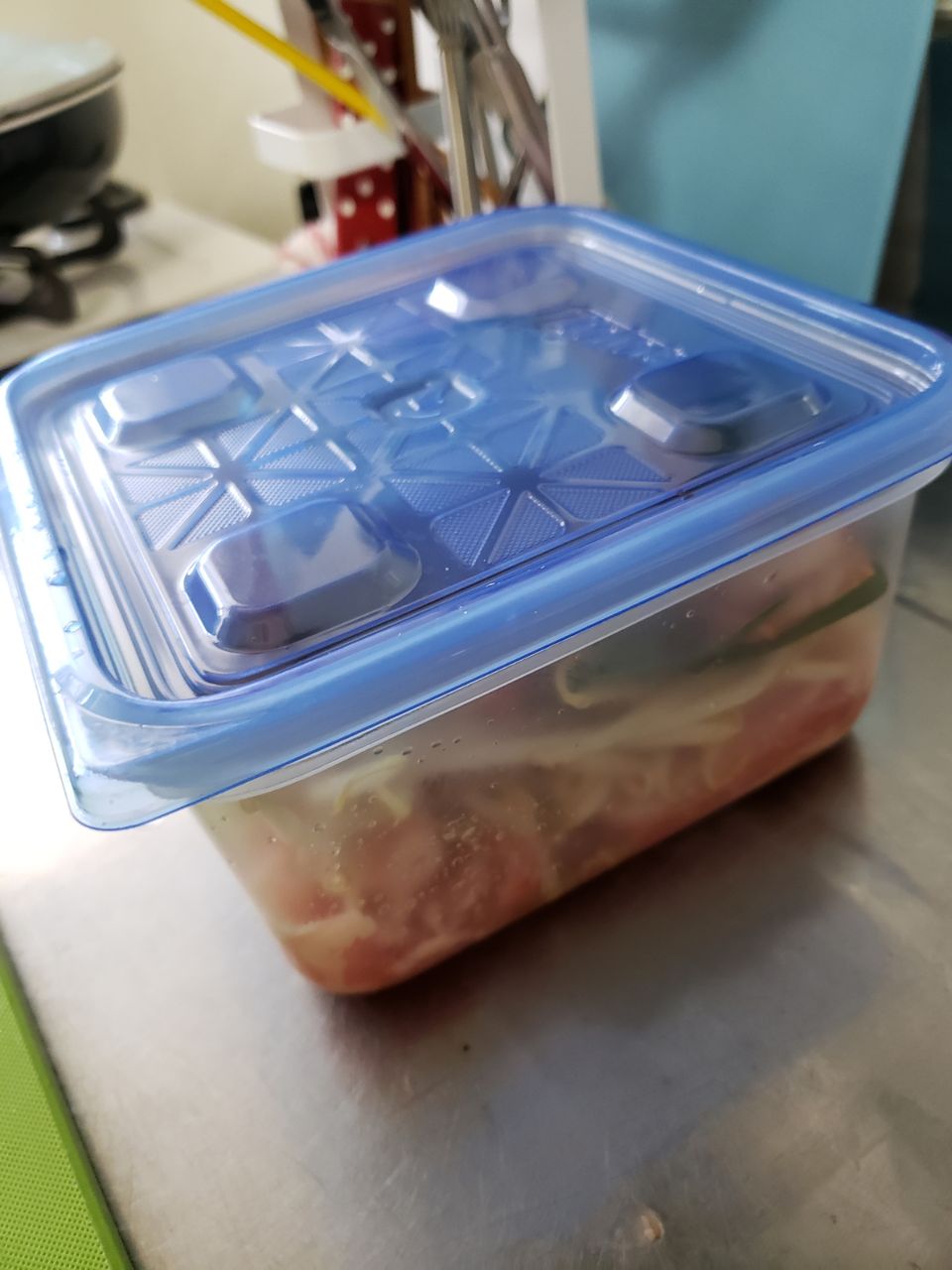 ジップロックのコンテナにつめて、そのまま冷蔵庫に保存