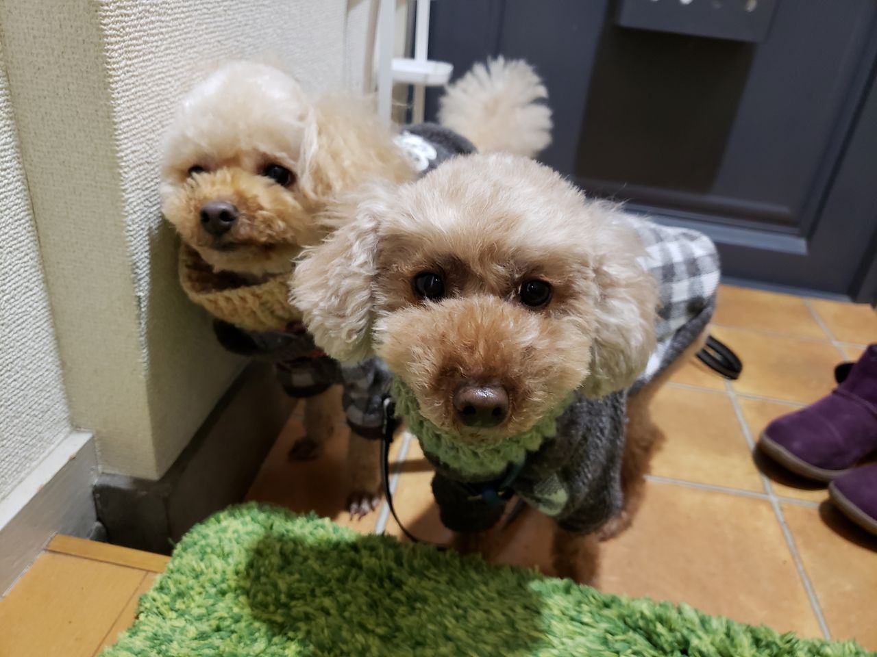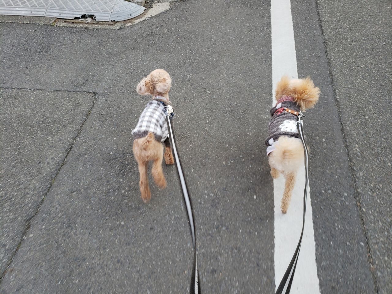 今朝は起きたら雨がやんでいて、ほっとしました~このあと一日雨になりそうだし、アランとニコルを外に出せてよかったです