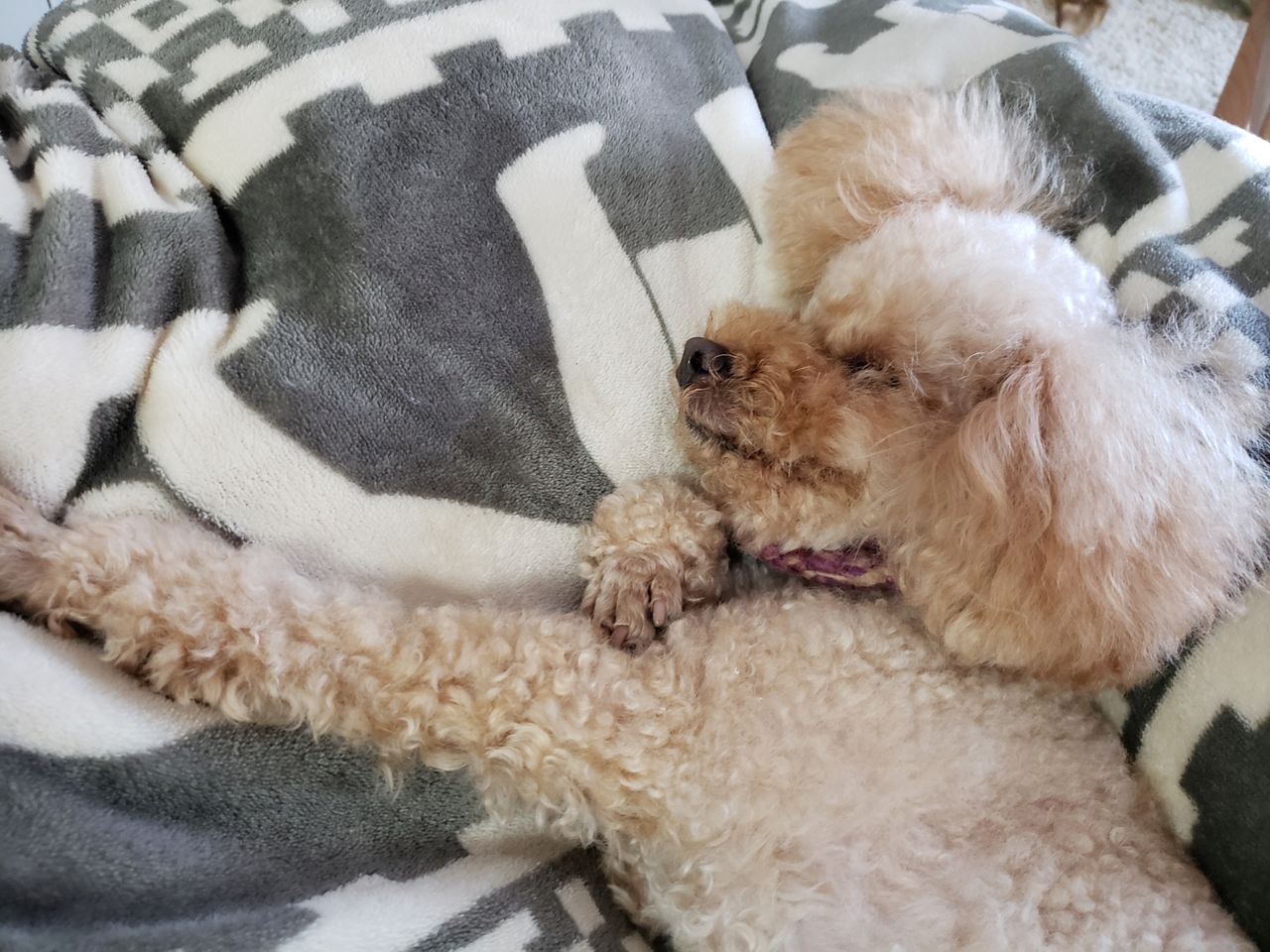 目は覚めているのをアランくんにさとられて、胸の上にのってり、耳元をゴソゴソされたり、これでは眠れない…(^_^;)